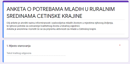 Anketa je anonimna i koristit će se za pripremu aktivnosti za mlade u Cetinskoj krajini.
