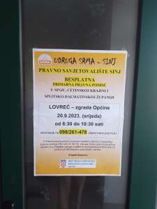 U općini Lovreć, u sklopu projekta Besplatne primarne pravne pomoći u Sinju, Cetinskoj krajini i Splitsko-dalmatinskoj županiji, održano je jučer besplatno pravno savjetovanje za sve mještane Lovreća. Na sve upite odgovarala je pravna savjetnica Marija Pupić Vurilj, a projekt je financiran od Ministarstva pravosuđa.