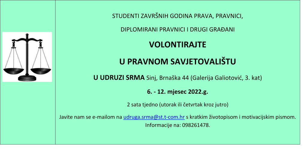 Javite nam se e-mailom na udruga.srma@st.t-com.hr s kratkim životopisom i motivacijskim pismom. Informacije na: 098261478.